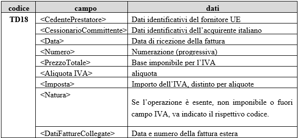 • Codicee TD18 (acquisti intracomunitari)