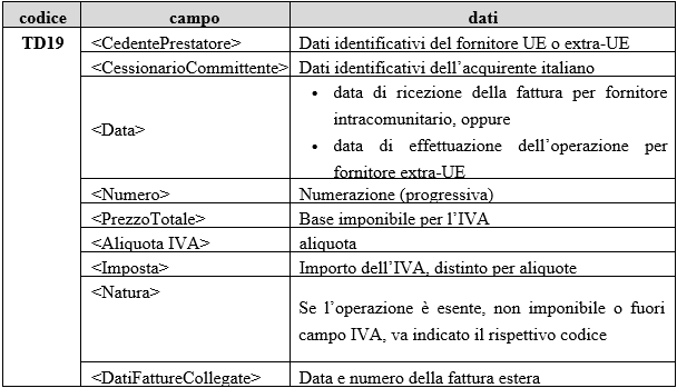 • Codicee TD19 (acquisti in Italia da soggetti non residenti ex art.-17 (2) legge IVA)